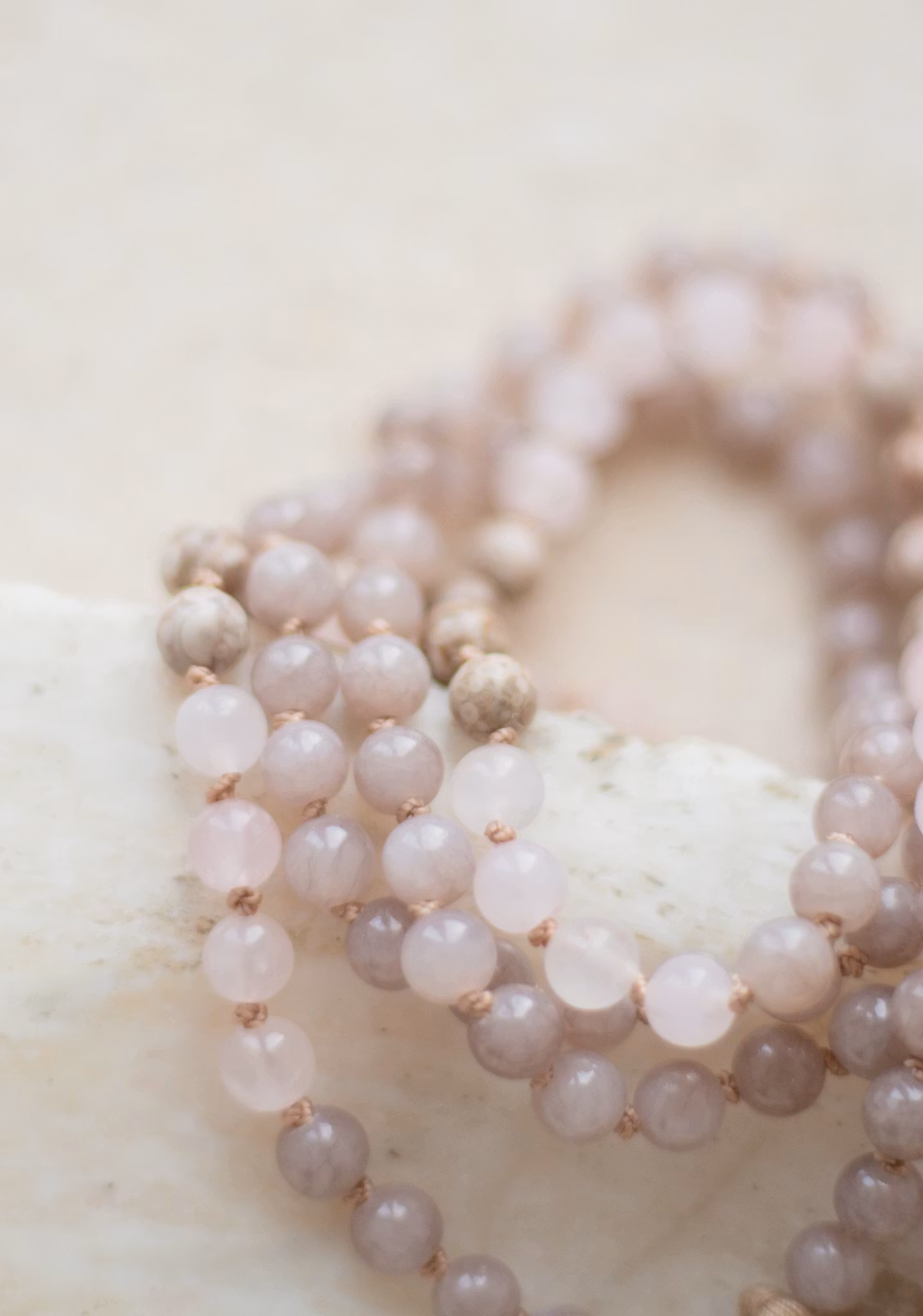 Handknutet unikt yogahalsband, meditations mala med 6mm stenar i