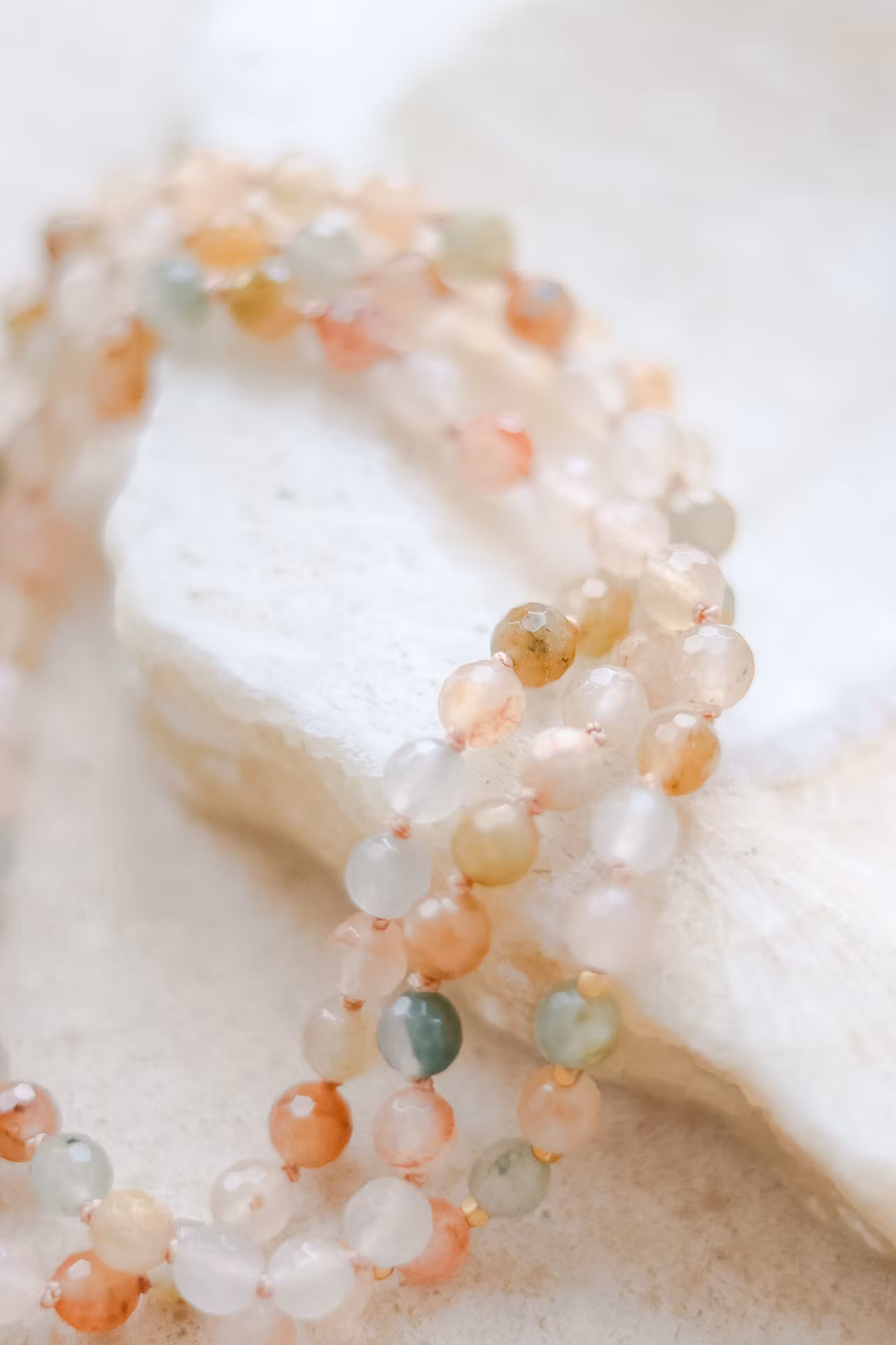 Unikt, handknutet mala i 6mm facetterad Kvarts och detaljer i 24K guld.