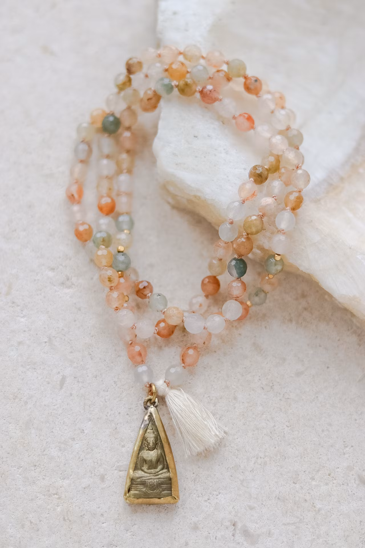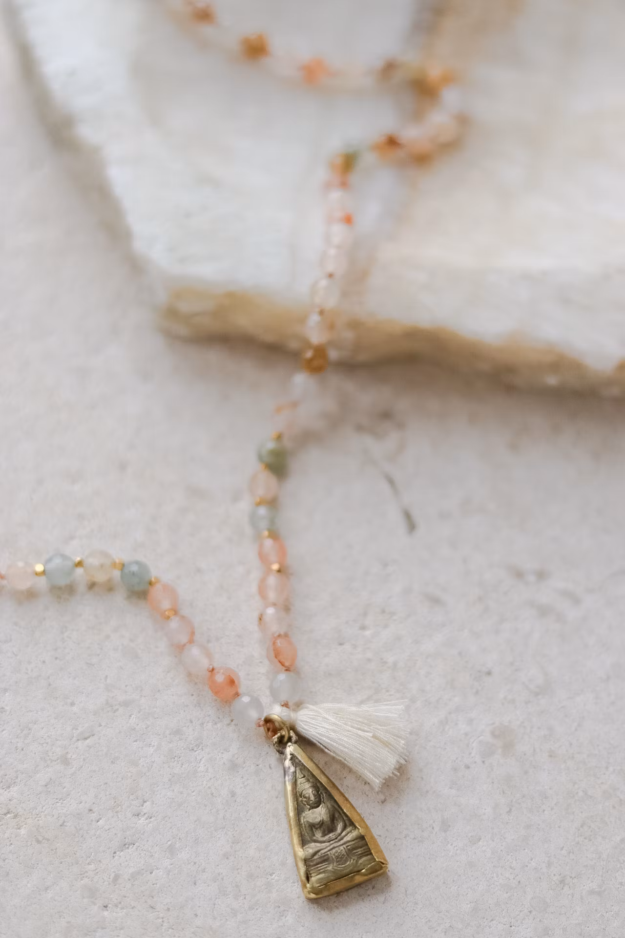 Kvarts är en kristall som ökar tankeverksamheten, eftersom det är en form av energi. Då Kvartsen styr och förstärker energier är den väldigt bra för manifesterande, helande, meditation, skydd och kanalisering. Kvartsen balanserar den universella energien och ökar tankeverksamheten så att du kan gå in i din kreativitet. Malan har även en vacker Buddha amulett som hänge.