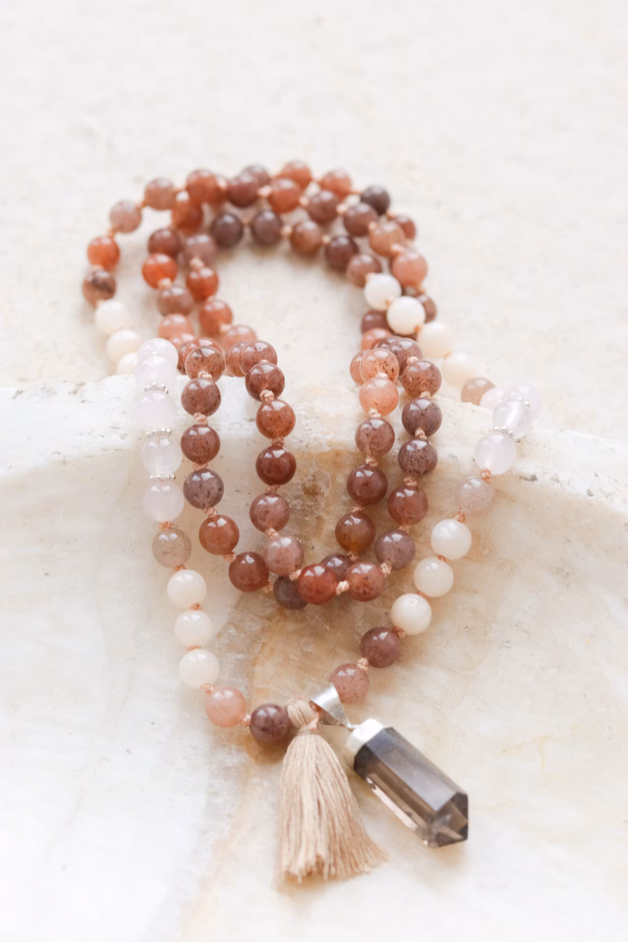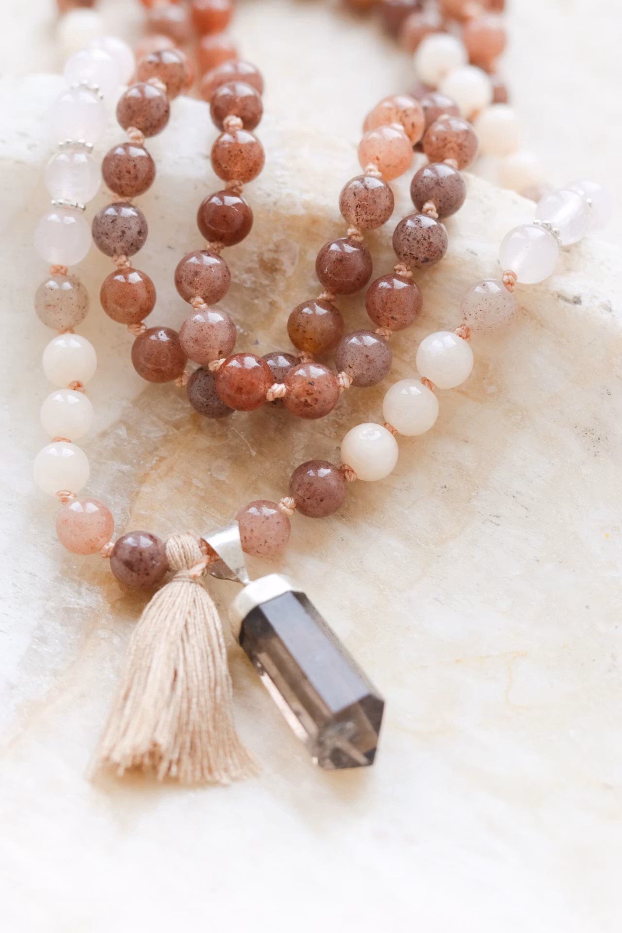 Handknutet unikt yogahalsband, meditations mala med 6mm stenar i